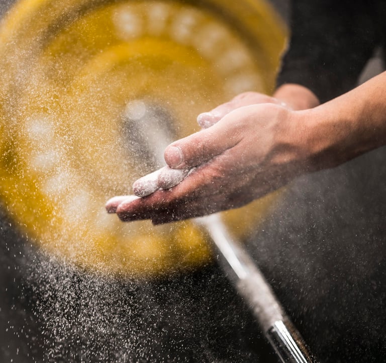 El carbonato de magnesio en polvo aumenta el coeficiente de fricción entre tus manos y la superficie con la que entras en contacto, mejorando de esta forma el agarre.